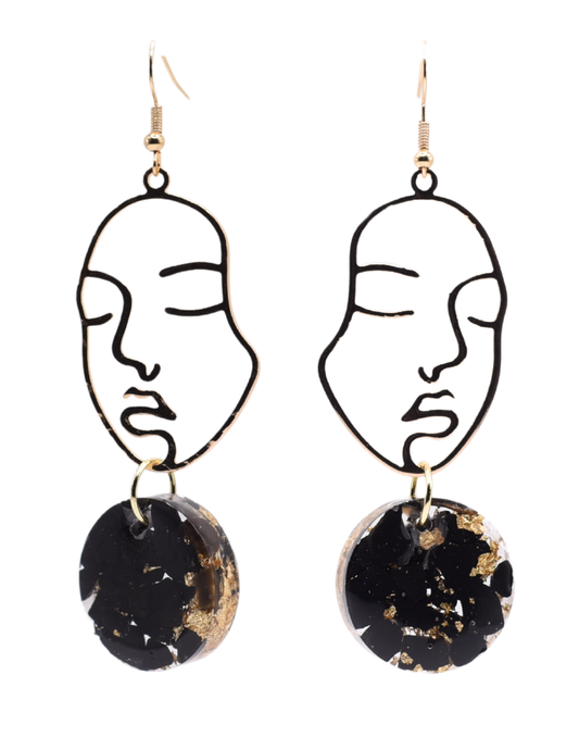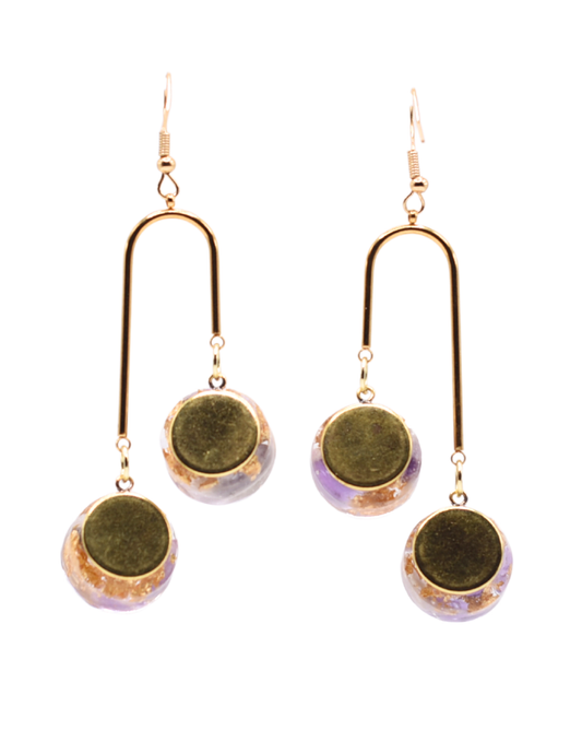 [Sale] Teardrop Dangle Earrings with Circle Resin Artwork
