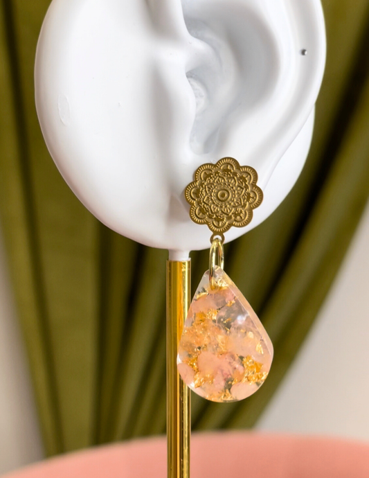 [Sale] Mandala Dangle Earrings with Rose Quartz